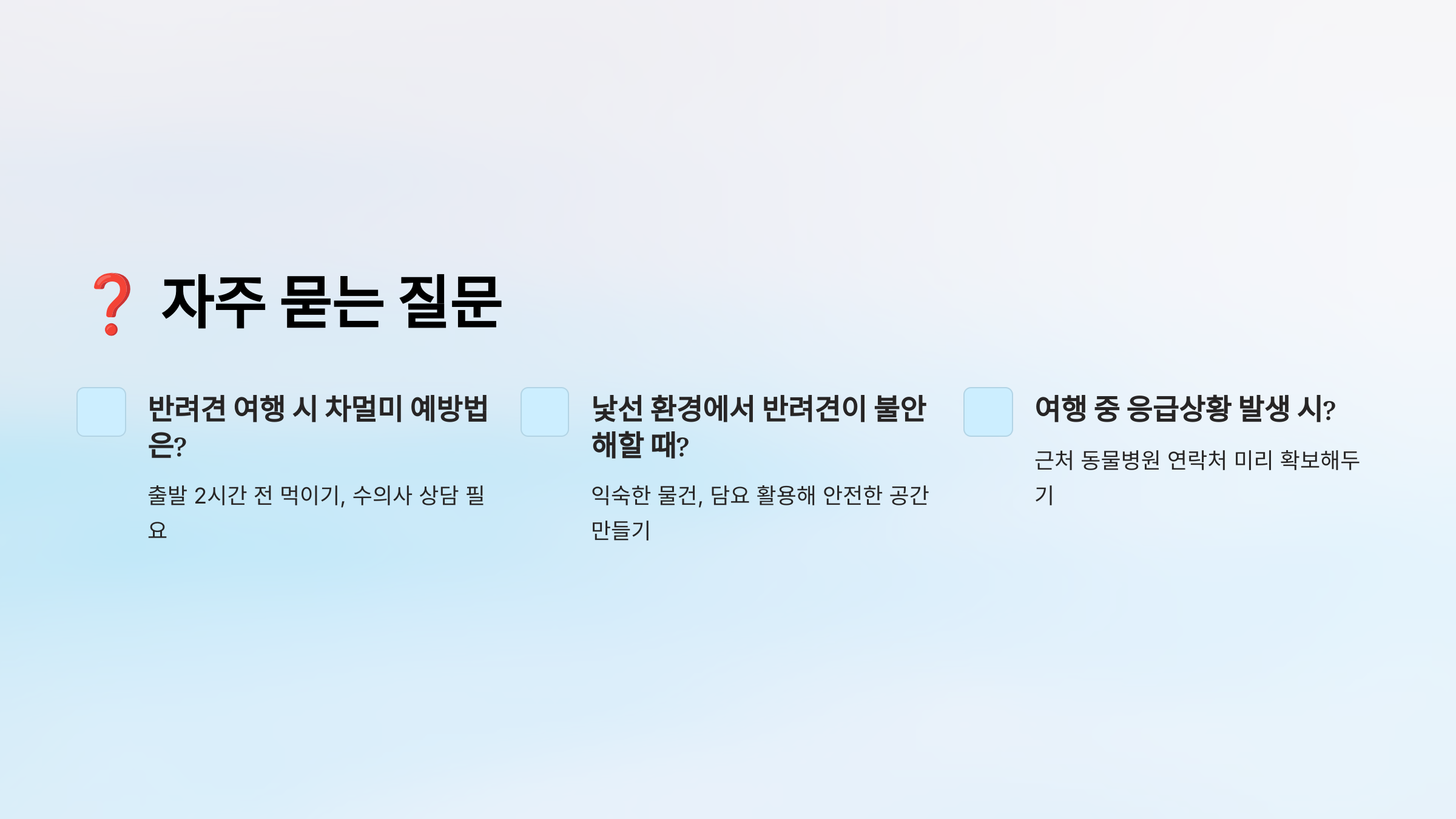 | 여행 전날 컨디션 점검 | 식욕, 배변, 활력 상태 체크 |