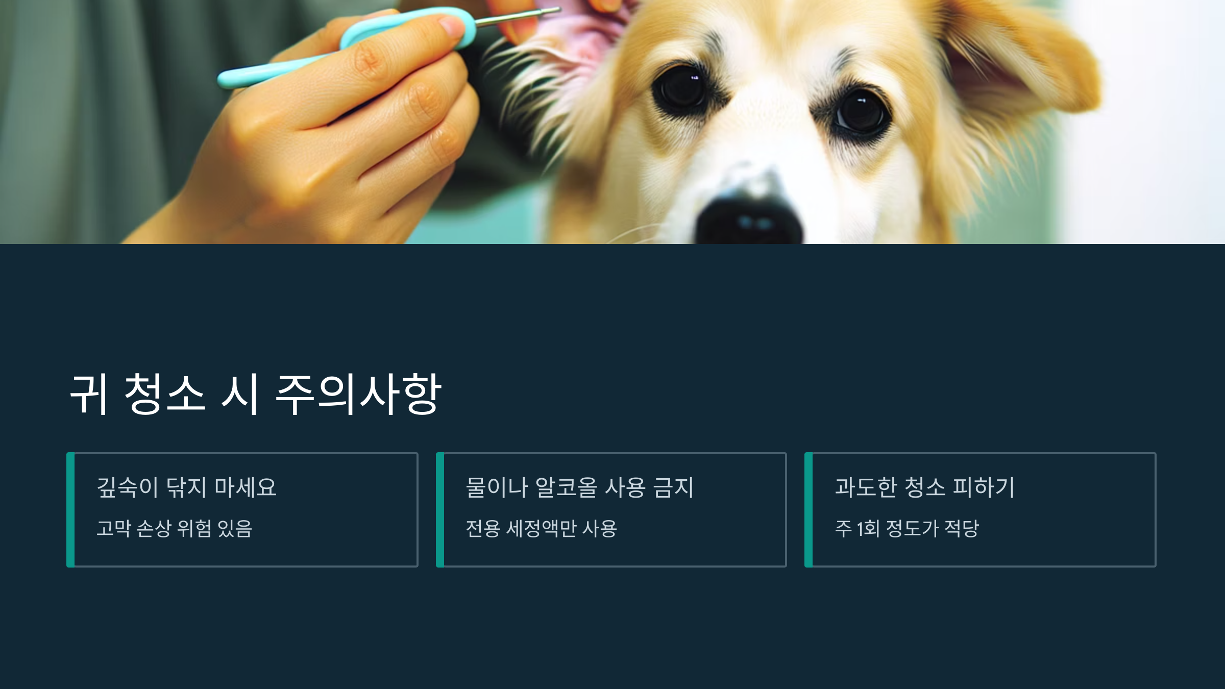 위 사항들만 잘 지키면, 안전하고 효과적인 귀 청소가 가능해요. 우리 강아지 귀 건강을 위한 첫걸음이에요!