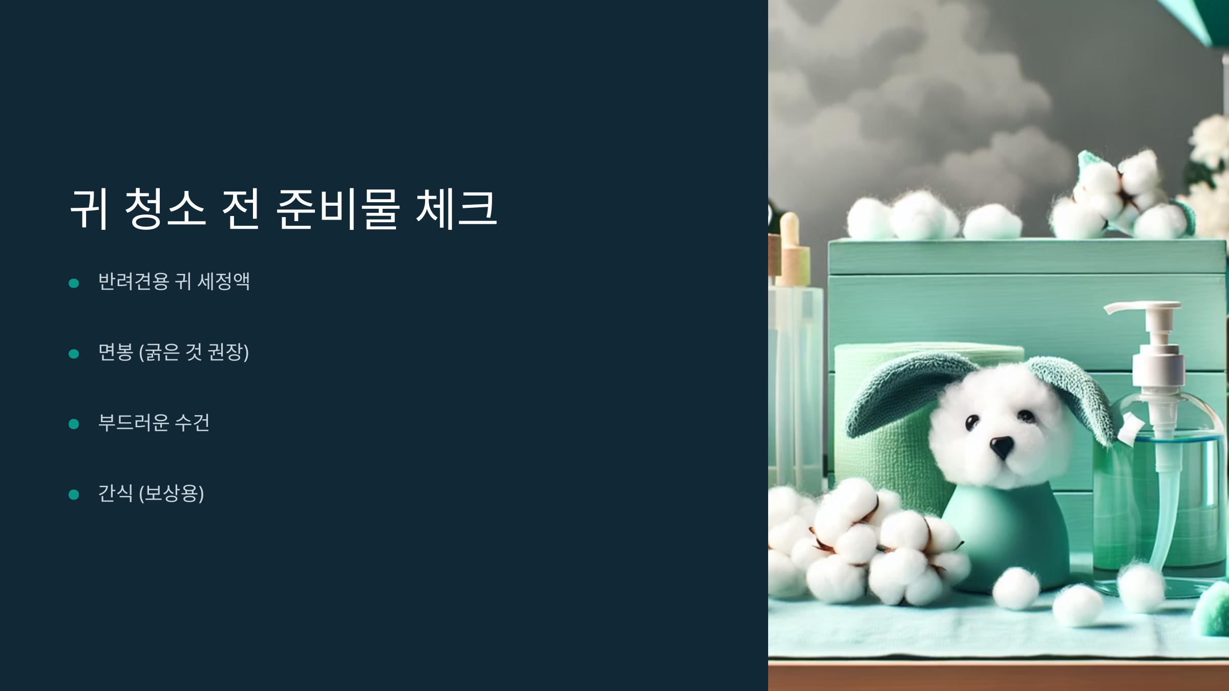 귀 청소를 시작하기 전에 필요한 준비물을 미리 챙기면 훨씬 수월하게 청소할 수 있어요. 강아지의 귀는 민감한 부위라서 적절한 도구와 환경이 중요하답니다. 🧺