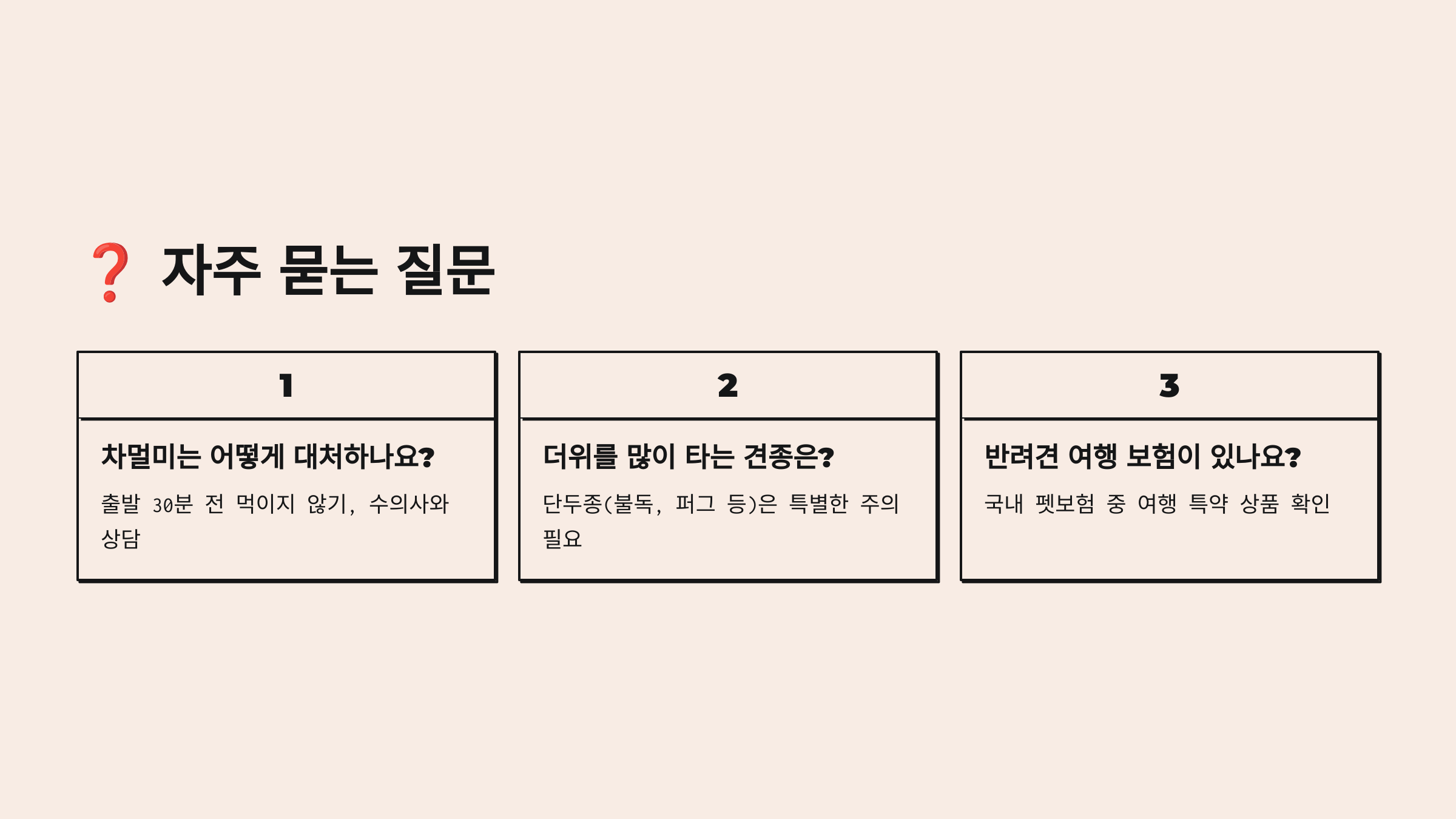 A7. 가까운 동물병원을 미리 파악해두는 것이 중요해요. 여행 전 검색해서 저장해두면 긴급 상황 시 도움이 돼요.