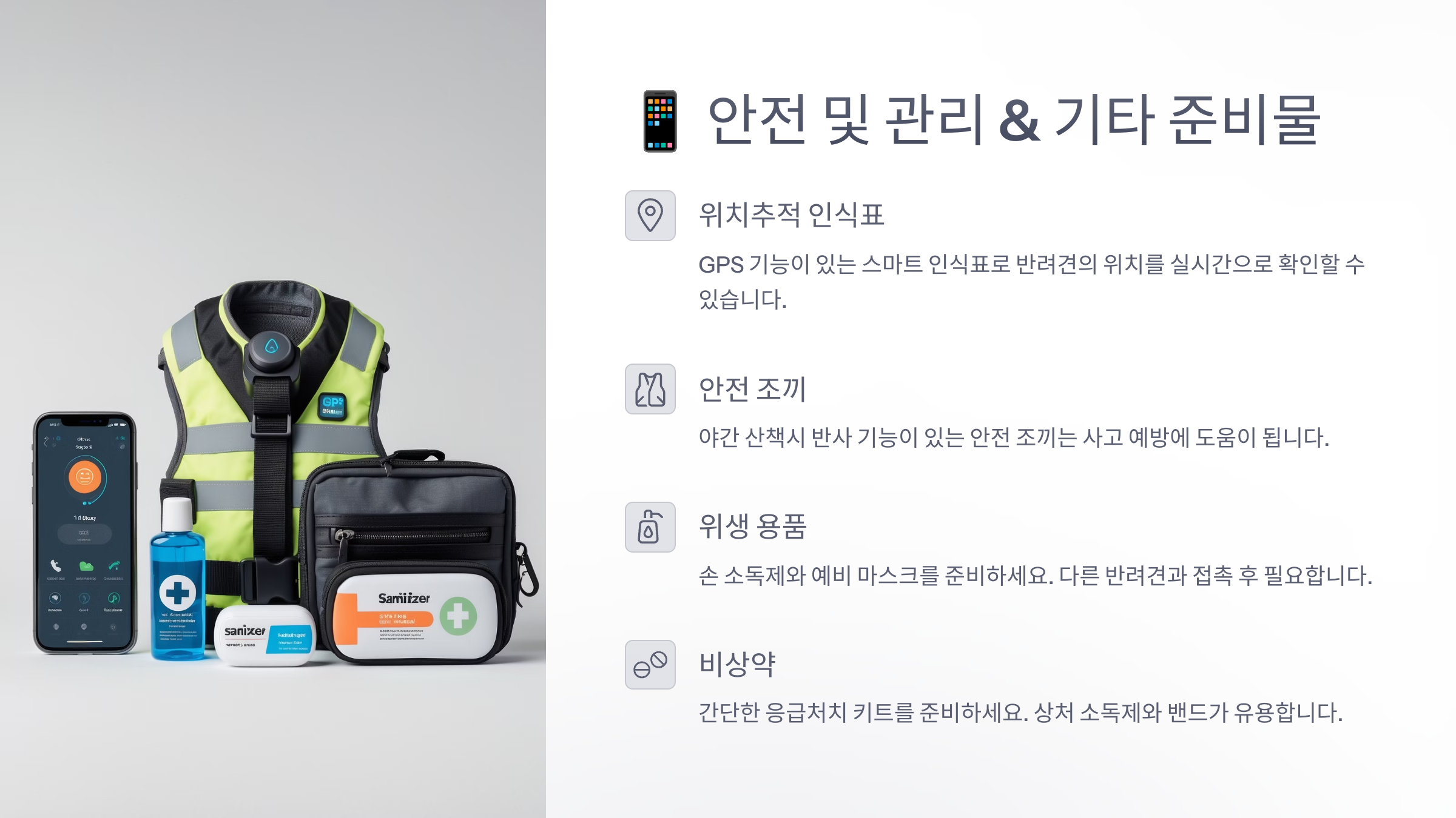 강아지의 안전을 지키는 건 가장 중요한 준비물이에요! 🛡️
