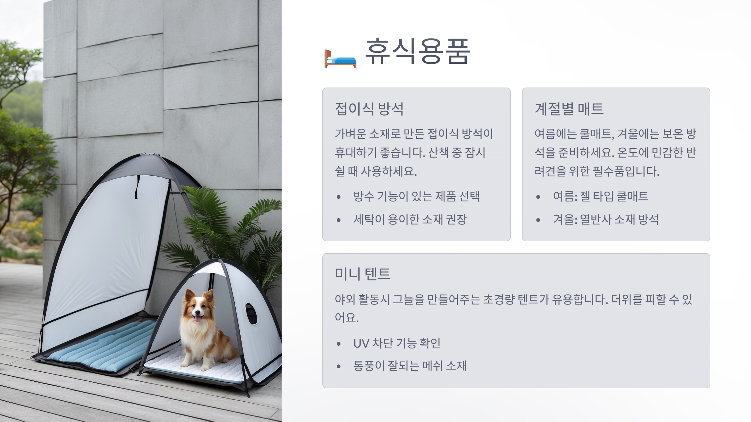 강아지의 휴식을 위한 준비, 간단하지만 꼭 필요한 준비물이에요. 🏖️