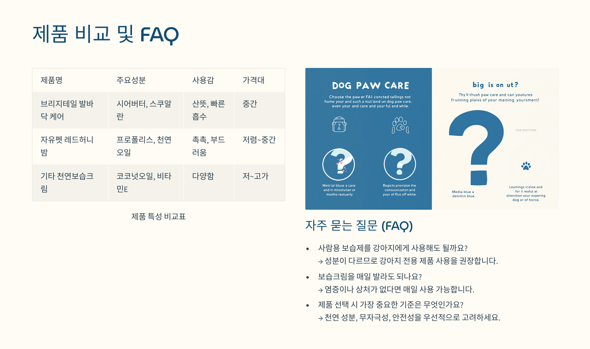 ✔ 너무 다양한 제품 중 헷갈린다면, 성분 비교표를 먼저 참고한 후 내 아이 피부에 맞는 타입으로 선택해보는 걸 추천해요! 🐶
