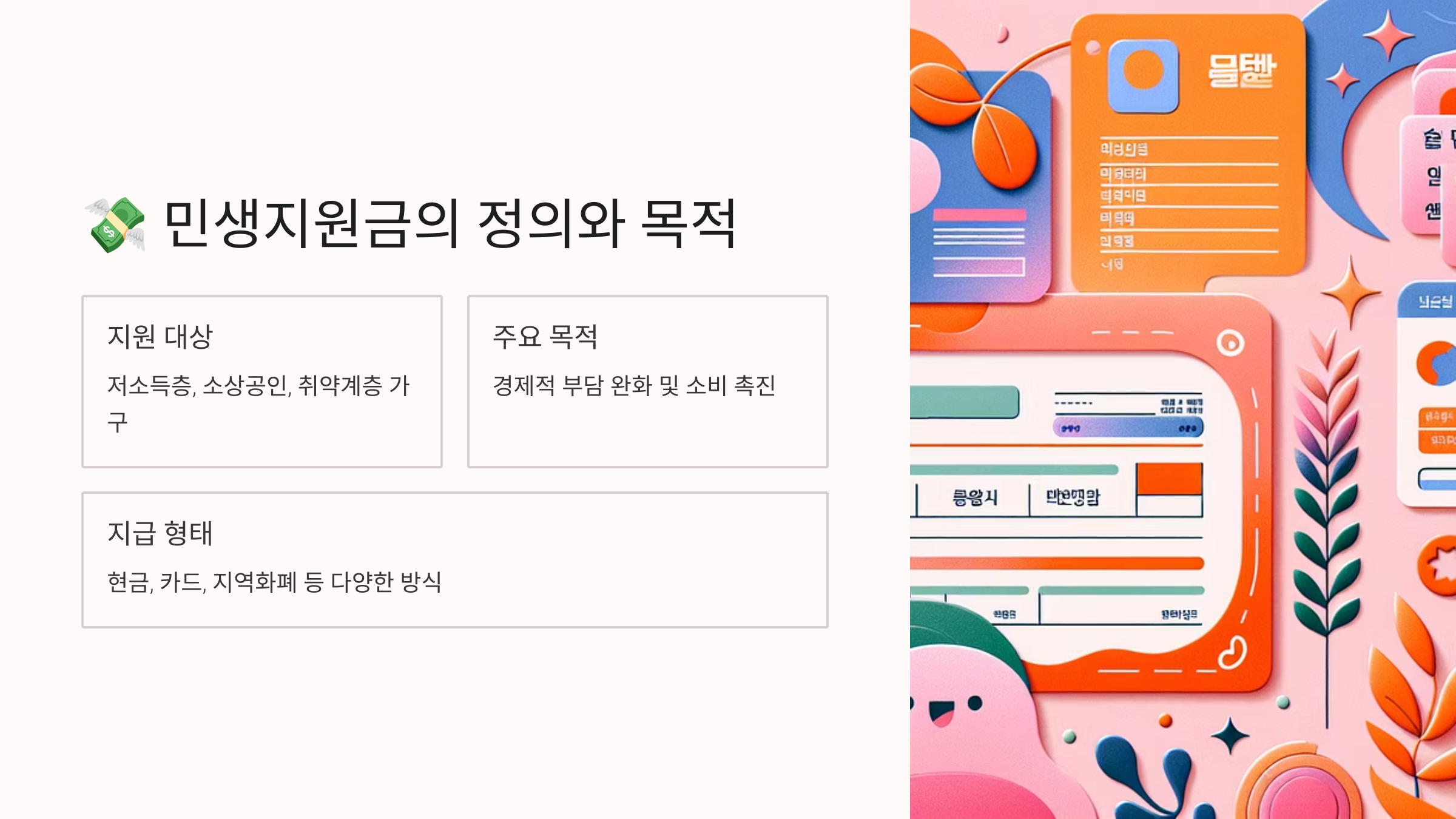 민생지원금은 정부나 지자체가 국민 생활 안정과 지역경제 활성화를 위해 지급하는 일종의 긴급 생활비 성격의 자금이에요. 보통 경기 침체나 고물가 상황 속에서 시민들의 소비 여력을 높이기 위해 만들어진 정책이에요.