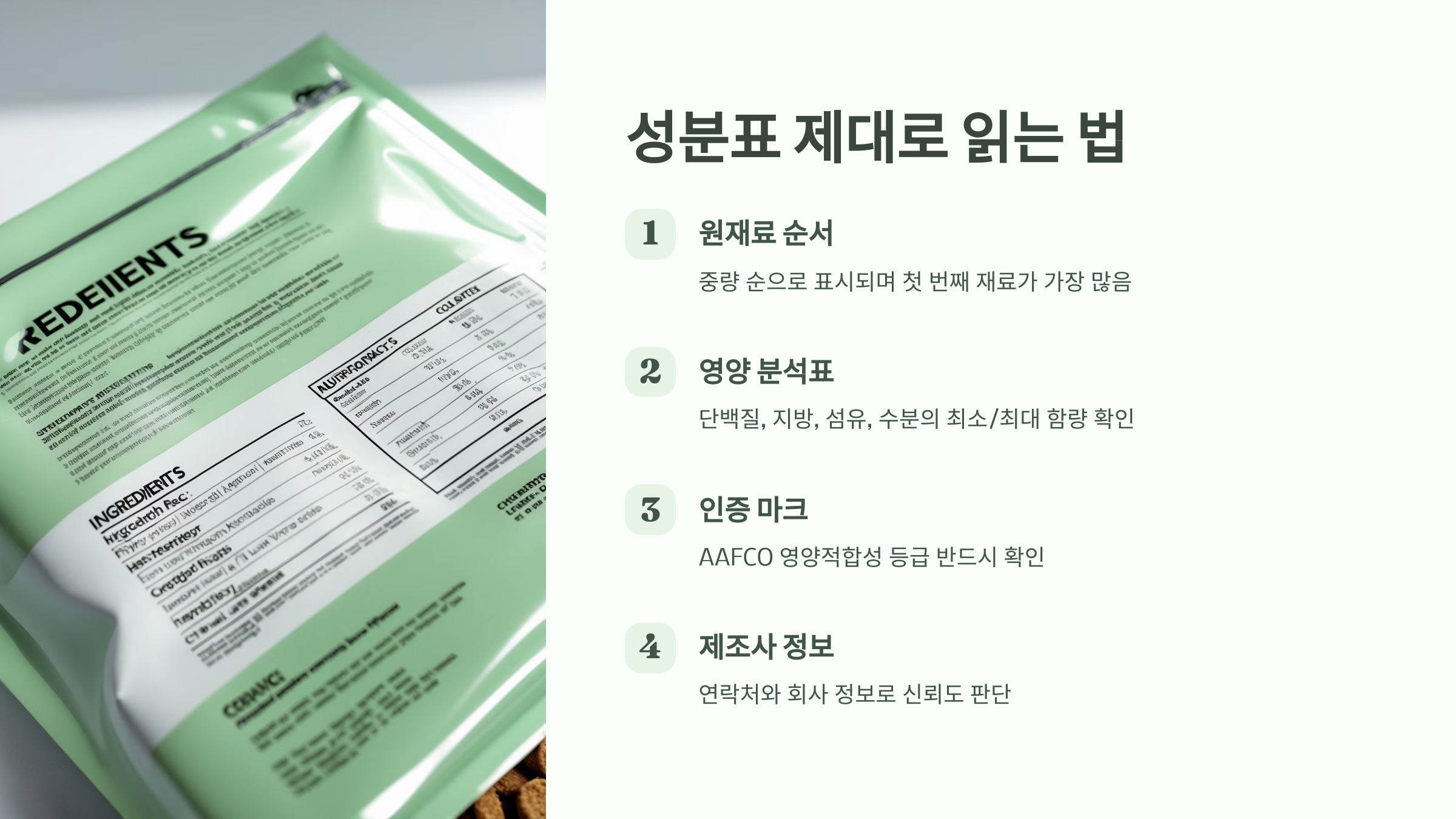 사료를 고를 때 가장 중요한 건 '성분표'예요. 그런데 많은 보호자들이 성분표를 그냥 지나치거나, 어떤 항목이 중요한지 몰라서 놓치는 경우가 많아요. 성분표는 그 사료가 어떤 원료로 만들어졌는지를 정확하게 보여주는 지표랍니다. 잘만 보면 내 반려동물에게 맞는지 아닌지를 한눈에 알 수 있어요.