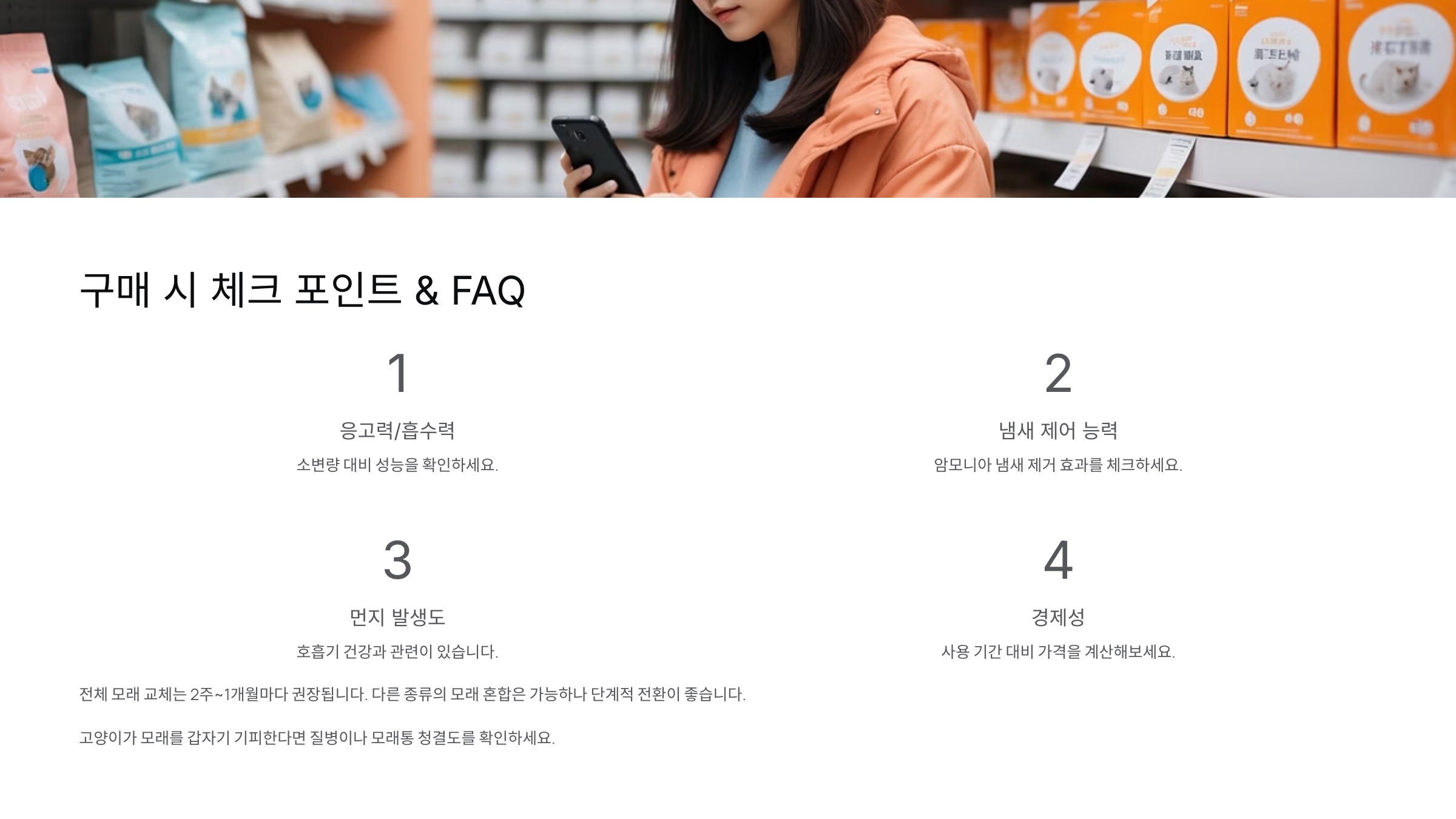 고양이 모래를 살 때는 단순히 가격이나 인기 순위만 보지 말고, 몇 가지 중요한 요소들을 꼭 따져봐야 해요. ✅